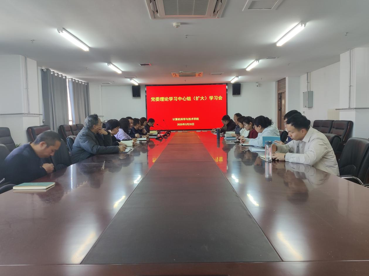 3月20日下午,计算机科学与技术学院在弘德楼213会议室召开党委理论学习中心组(扩大)学习会,学院领导班子成员、科级干部参加会议。会议由党委书记周启主持。