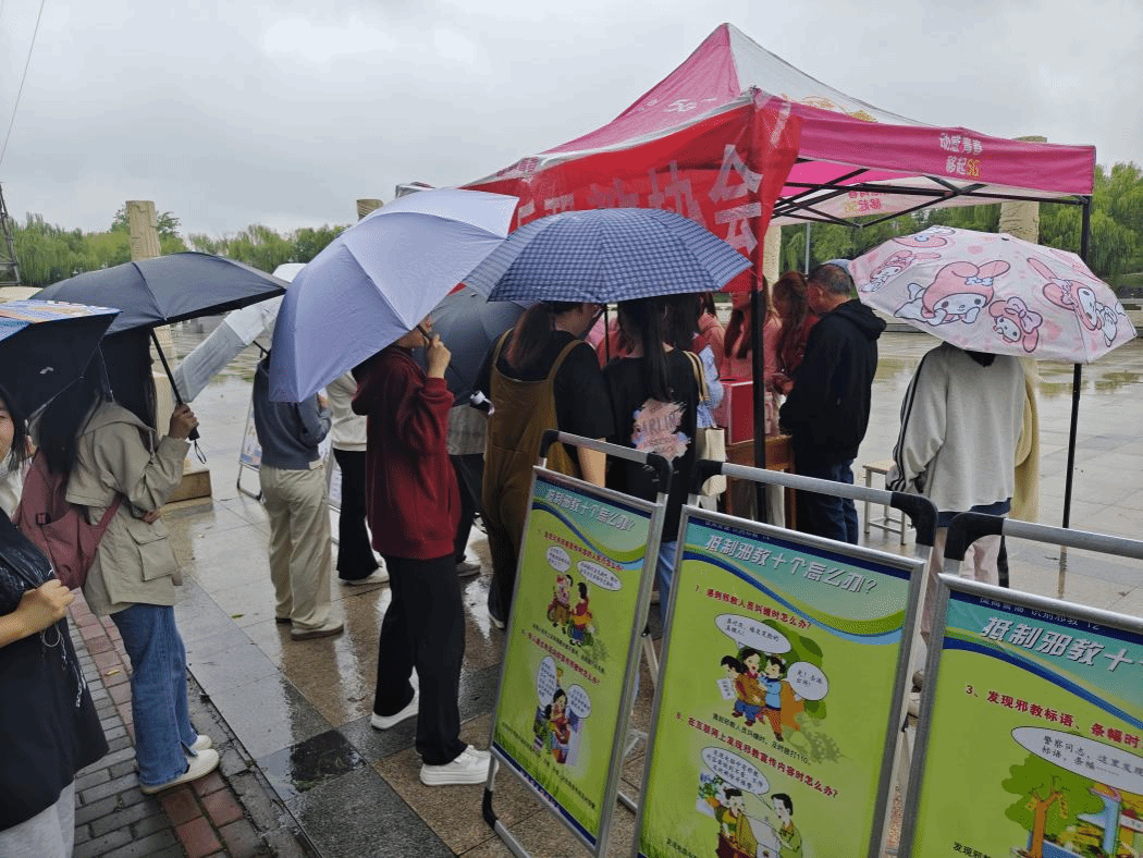 现场设置反邪教主题展板,图文并茂揭示邪教的常见手法与危害;知识竞答环节吸引众多师生参与,题目涵盖邪教特征、法律法规及防范方法等内容。参与者随机抽题作答,完成答题即可获得定制徽章、反邪教主题明信片等纪念品,在互动中加深理解与记忆。