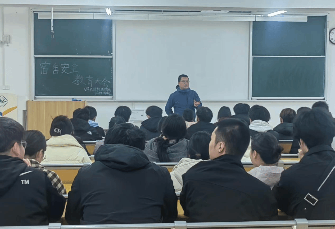在弘善楼合一、合二教室召开宿舍安全教育大会。学院党委书记周启、党委副书记董华明、各年级辅导员及全体宿舍长共计300余人参加会议。