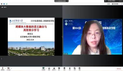 承办的“CCF走进高校”第904场公益讲座活动,在线成功举行。本次活动邀请北京邮电大学计算机学院博士生导师梁美玉博士和刘炳言博士,为我校近300名师生做了专题学术报告并进行了交流。报告会由信息工程学院院长李国厚教授主持。