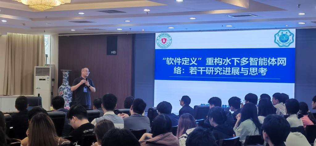 韩教授在报告中首先阐述了基于“软件定义网络”技术重构水下多智能体网络的基础架构。其次,结合其实验室团队在该方向的研究成果,介绍如何利用软件定义网络技术,重构水下多智能体网络的数据路由架构、编队航行架构以及自主学习决策架构。最后,该报告重新审视与构建了水下多智能体系统的协同控制机制。