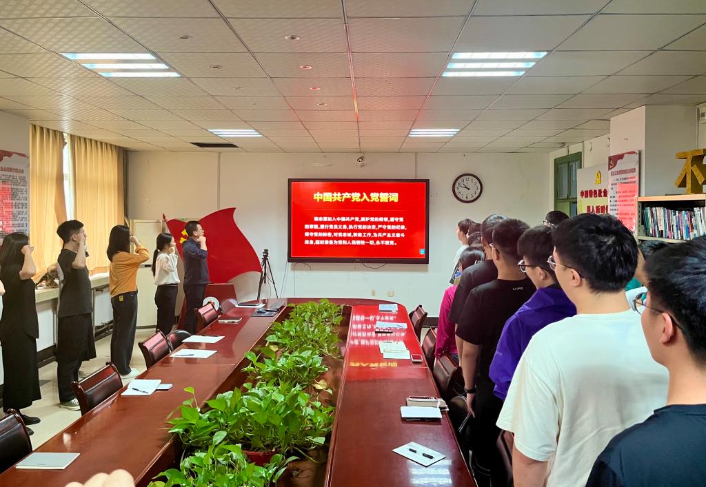 最后,全体师生党员重温入党誓词。面向鲜红的党旗,在领誓人董华明同志的带领下,全体师生党员举起右拳,庄严宣誓。在一句句慷慨激昂的誓词里,毕业生党员将牢记初心使命,发挥先锋模范作用,为党旗增辉,为时代添彩。