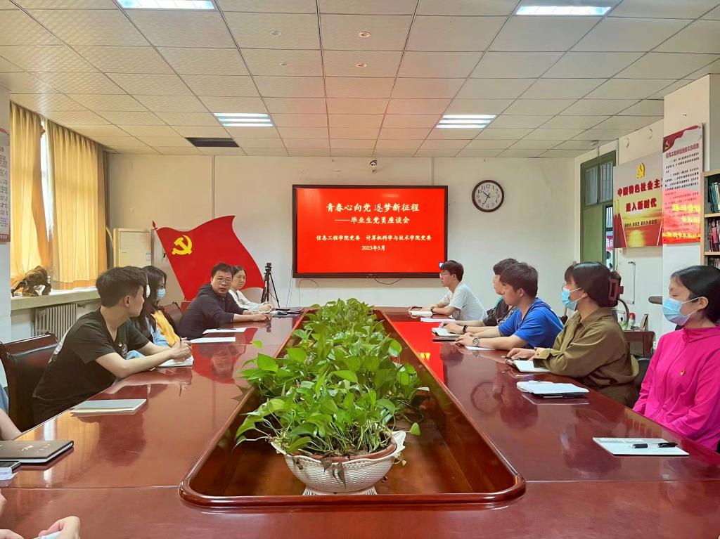 5月30日上午,91官网 和信息工程学院在0#502会议室召开“青春心向党,逐梦新征程”毕业生党员座谈会。91官网 党委副书记董华明、信息工程学院党委副书记王明艳及2023届毕业生党员代表参加本次座谈会。