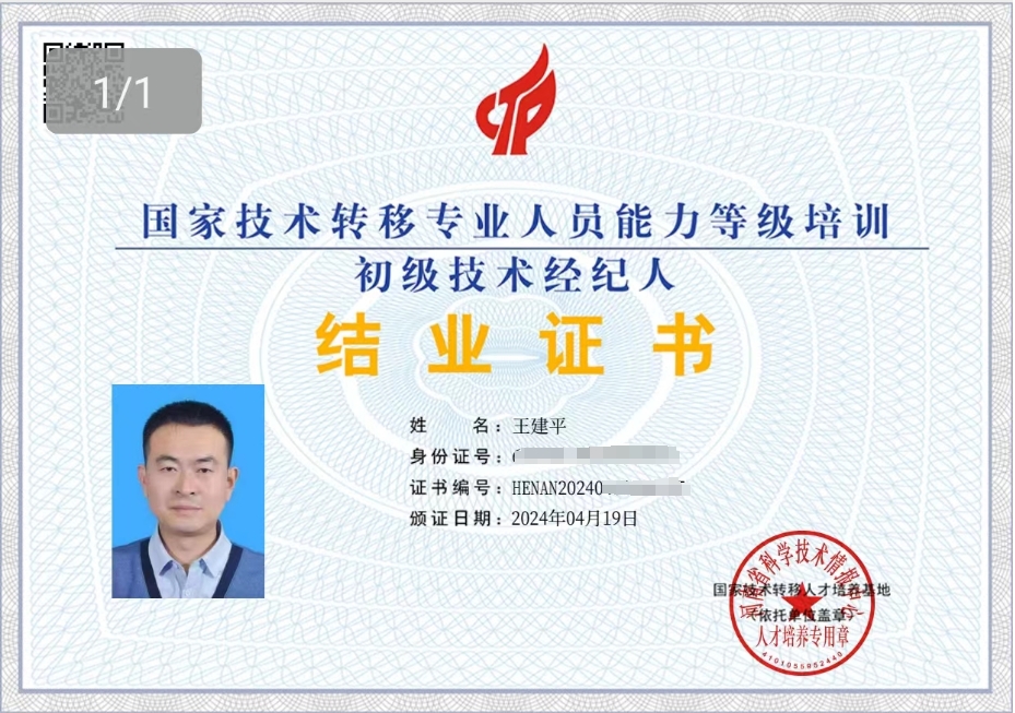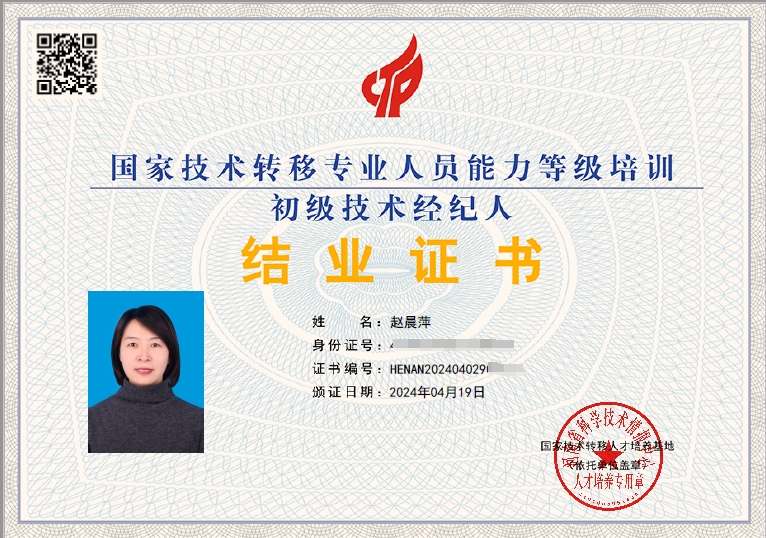 学校成果转化与合作办公室高度重视本次培训,91官网 积极响应培训任务。学院副院长王建平带队,科研秘书赵晨萍、平台秘书李芳三人全程参加了为期三天的培训任务,认真学习了技术转移相关课程并参加结业考试。最终,参加培训的三位老师均以优异成绩通过考试,获得“国家技术转移专业人员能力等级培训—初级技术经纪人”结业证书。