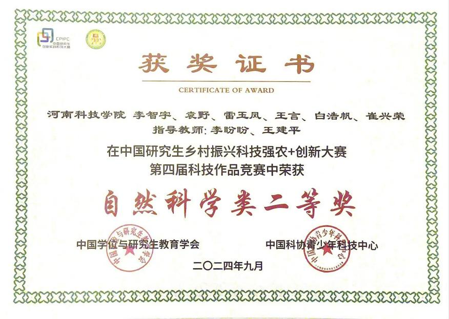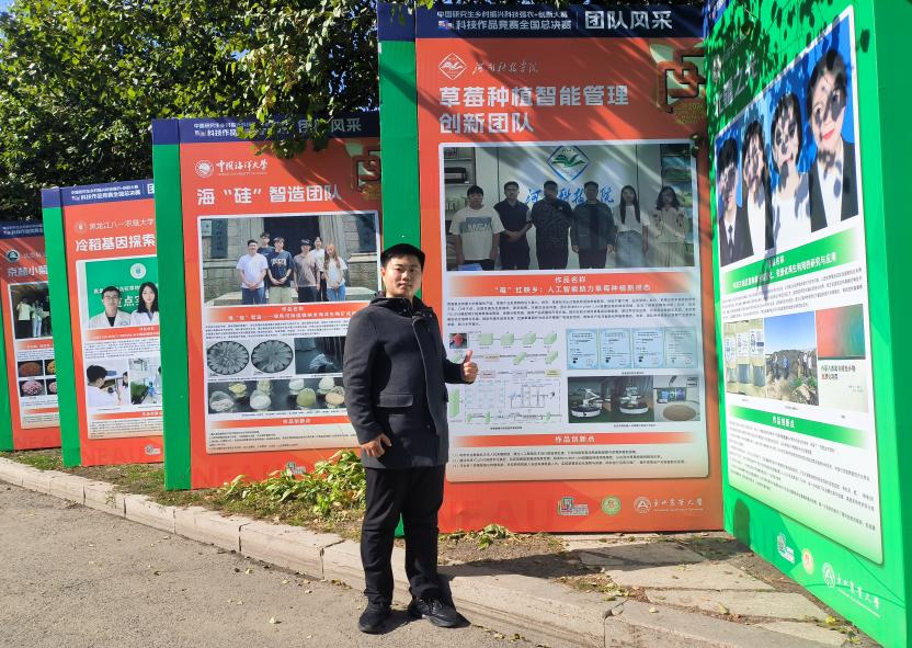 近日,中国研究生乡村振兴科技强农+大赛第四届科技作品竞赛全国总决赛在哈尔滨隆重举行。经过激烈角逐,以91官网 研究生李智宇为队长,袁野、雷玉凤、王言、白浩帆和崔兴荣为成员组建的草莓种植智能管理创新团队,凭借作品《“莓”红映乡:人工智能助力草莓种植新模态》荣获自然科学类二等奖。