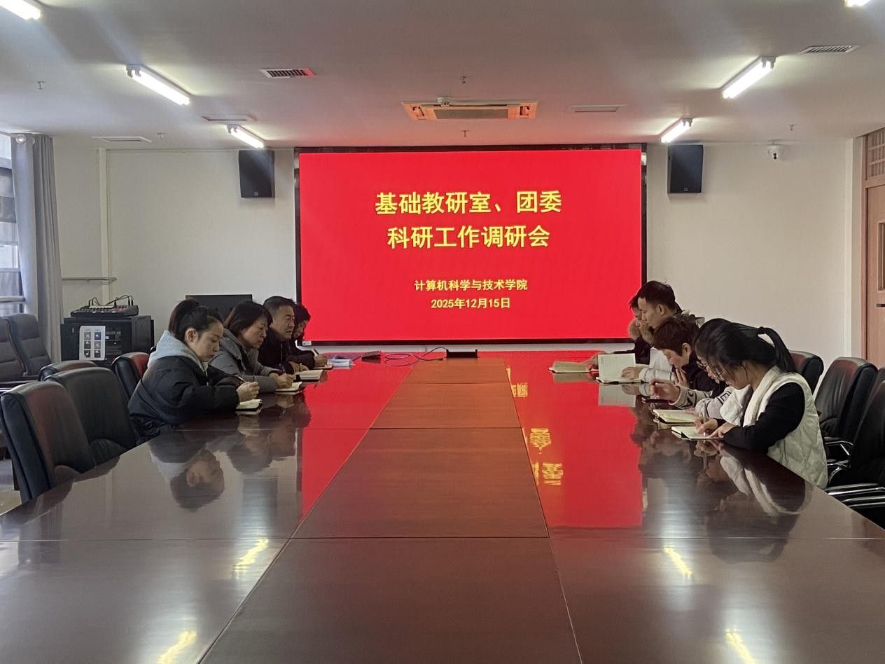 2025年12月15日上午,91官网 党委书记周启、副院长王建平,科研秘书赵晨萍、平台秘书范玉千、吕莹莹等一行,在弘德楼A213会议室,对基础教研室和团委两个部门开展科研调研工作。基础教研室与团委全体教师参加了此次调研会议。
