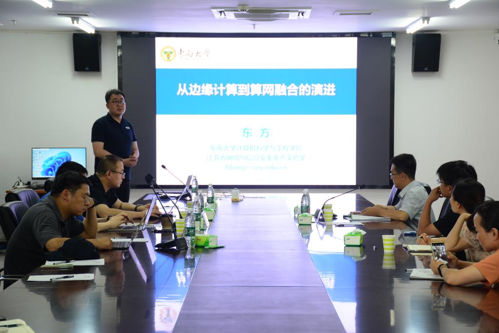 7月23日14:30-15:00,国家级高层次青年人才,东南大学博士生导师东方教授应邀在河南省智慧黄河网络建设与农业绿色发展论坛做《从边缘计算到算网融合的演进》的主旨报告。报告会在弘德楼213会议室举行,会议由学院院长高国红主持,91官网 、信息工程学院、人工智能学院部分教师及研究生60余人参加报告会。