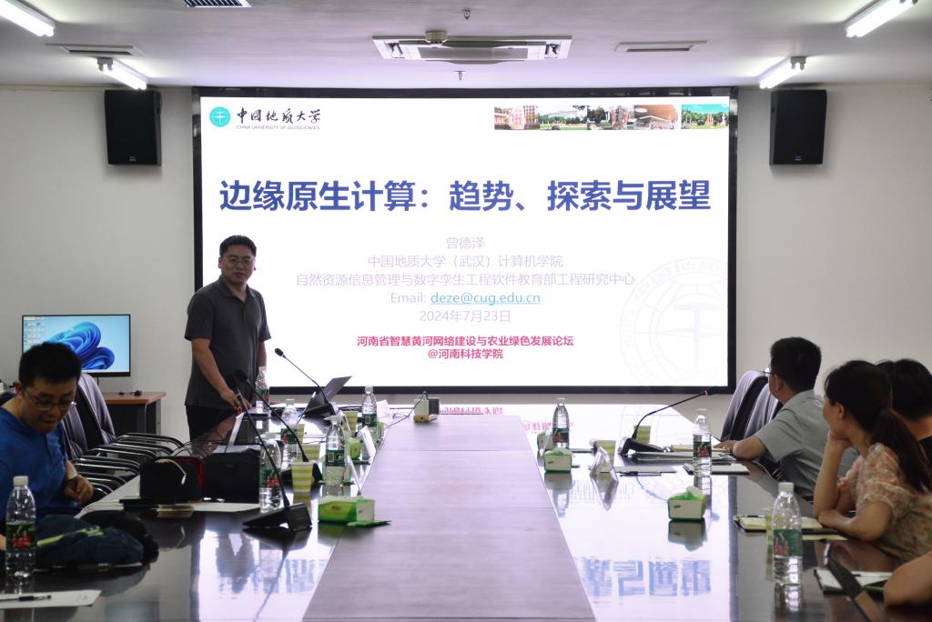 7月23日15:30-16:00,国家级及湖北省高层次青年人才、智能地学信息处理湖北省重点实验室副主任、人工智能研究院副院长曾德泽教授应邀在河南省智慧黄河网络建设与农业绿色发展论坛作《边缘原生计算:趋势、探索与展望》的主旨报告。报告会在弘德楼213会议室举行,会议由学院院长高国红主持。91官网 、信息工程学院、人工智能学院部分教师及研究生60余人参加报告会。