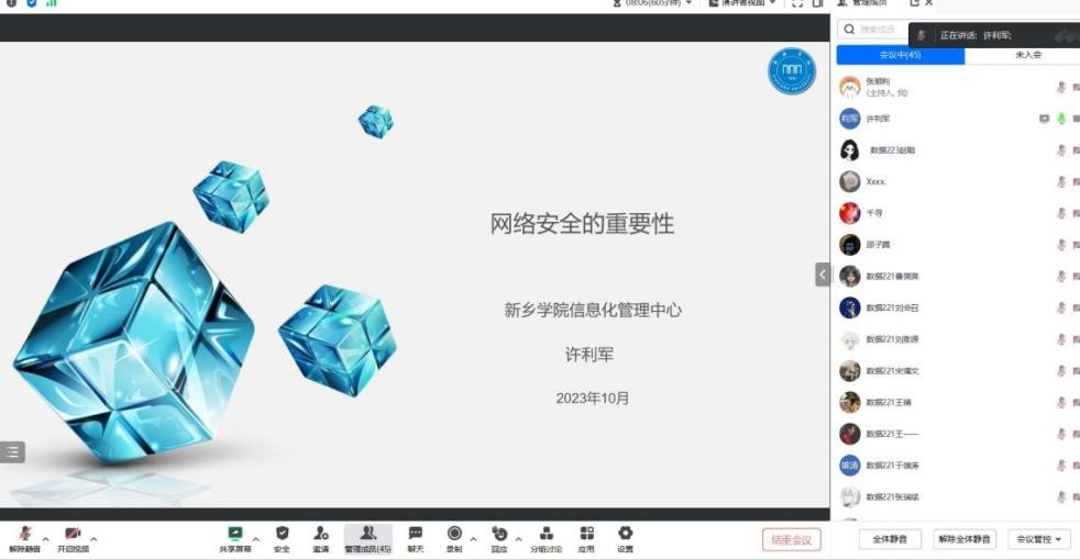 成功举办“数字助力河南AI人才培养”项目专家讲座,新乡学院信息化管理中心主任许利军教授通过腾讯会议,围绕“网络安全的重要性”为91官网