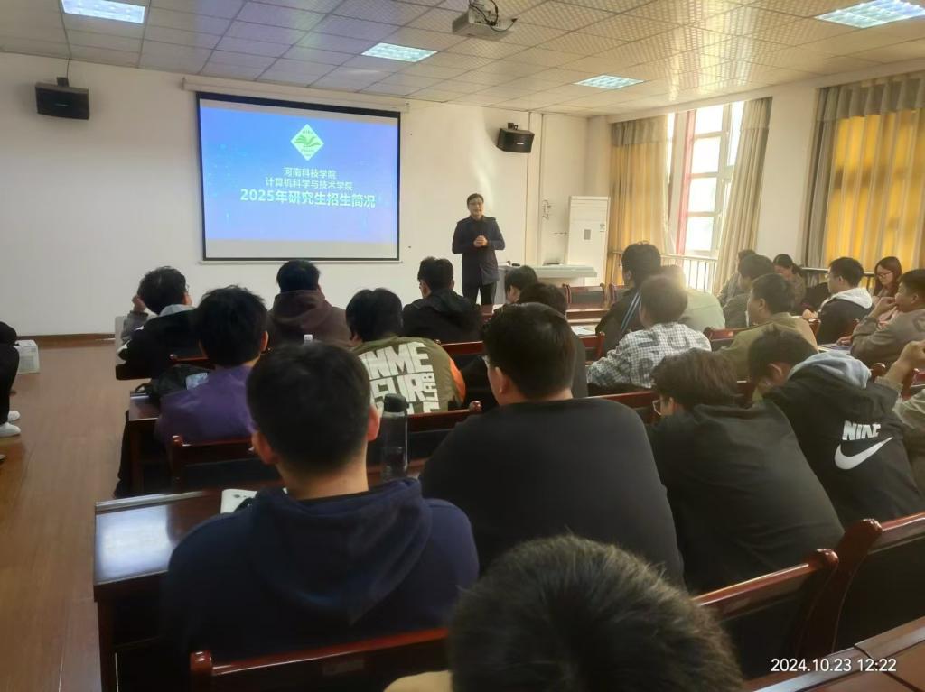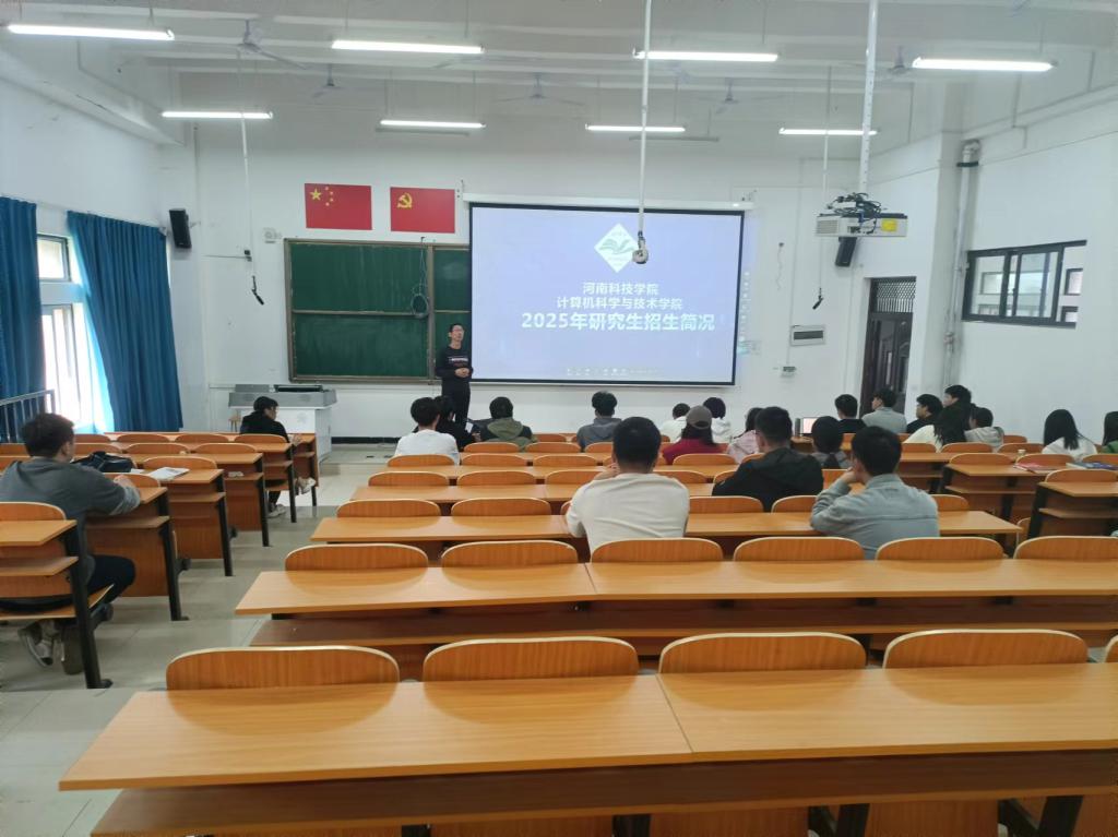91官网 李学勇、吴效莹、范玉千、王新法、炎士涛等多位导师奔赴黄河交通学院、郑州财经学院、郑州工业应用技术学院等多所高校,举办研究生招生宣传座谈会和宣讲会,向考研学生详细介绍了学院的基本概况、学科情况、导师队伍、研究生培养,以及2025年计算机技术专业、智慧农业专业硕士研究生招生相关政策,并耐心地对学生提出的疑问进行一一解答。