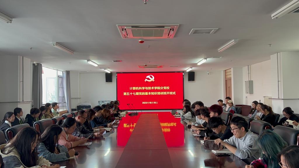 在A208会议室举行第57期党的基本知识培训开班式。学院党委书记周启、全体辅导员和63名培训班学员参加开班式。仪式由团委书记李听主持。