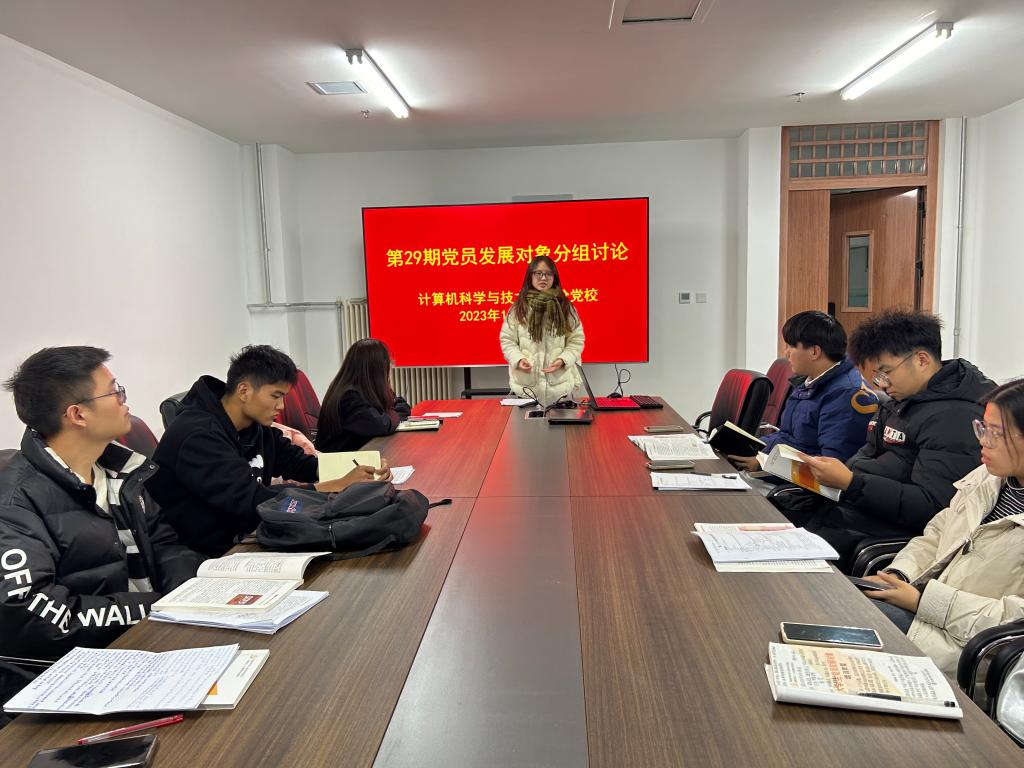 为进一步端正发展对象的入党动机,加强同学们的思想政治修养,11月23日晚上,91官网 分党校在308会议室组织了第29期党员发展对象专题讨论。本次讨论会由团委书记李听主持,辅导员张敬敬、团委学生会负责人、17名发展对象培训班学员参加会议。