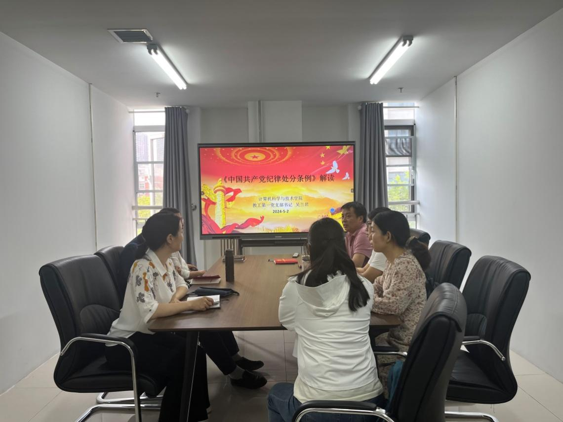 教工第一党支部在弘德楼A208室开展党纪学习教育专题党课,支部全体党员参加学习。