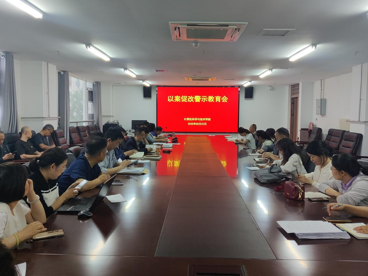 5月22日下午,计算机科学与技术学院在弘德楼A213会议室召开以案促改警示教育会,学院领导班子及全体教师参加会议,会议由学院党委书记周启主持。