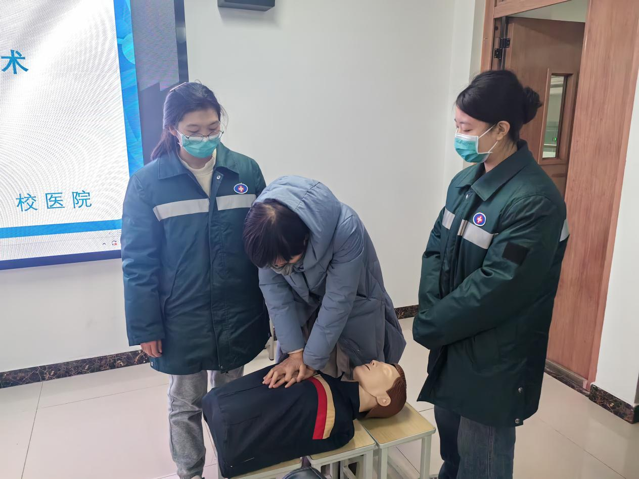 宁文虹医生从健康生活方式、急救培训等方面进行讲解,强调了健康生活方式的重要性,通过合理饮食、适量运动和规律作息保持良好身心状态,接着为老师们开展急救培训,详细讲解了心肺复苏、扭伤、烧伤等急救相关知识,并现场演示单人徒手心肺复苏术,并指导老师们进行实践操作。最后医护人员为大家发放了非常贴心的健康台历,可以记录自己的身高、体重、血压、血糖等信息,方便后续跟踪查阅,以便及时进行健康指导。