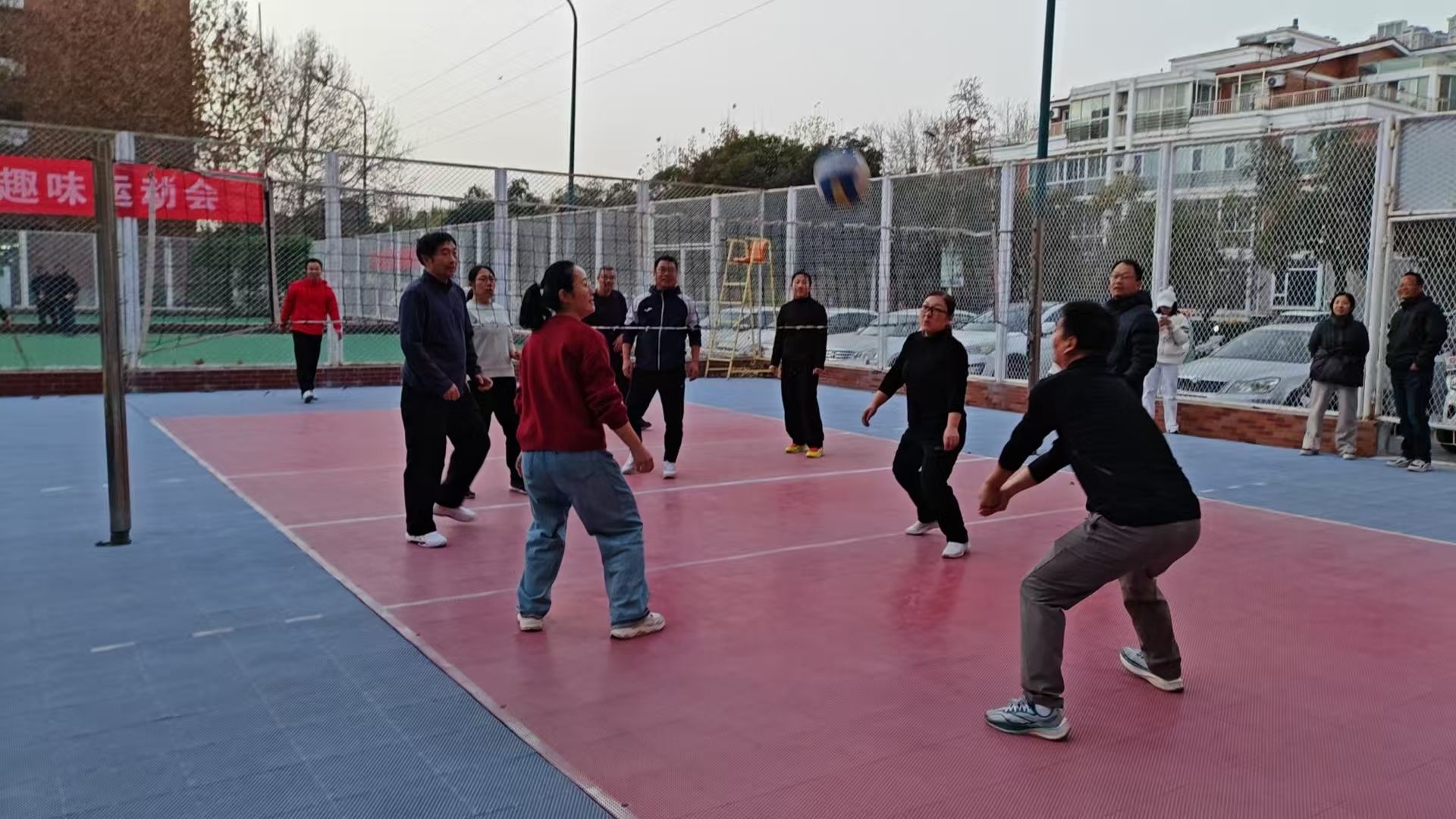 趣味活动现场气氛热烈,各教研室组队参赛,队员们默契十足、全情投入。在接力投沙包、接力投球和原地接力套圈等项目中,教职工们精神抖擞,争分夺秒,展现了团结协作、拼搏进取的风貌。气排球友谊赛同样精彩迭起,赛场上队员们精准发球、巧妙传接、有力扣杀、严密防守,动作干脆利落,现场掌声与欢呼声不绝于耳。