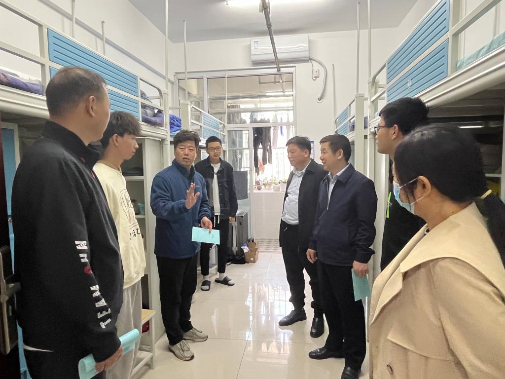 走访中,领导老师和留校的同学们进行了深入亲切的交流,提醒同学们要增强安全意识和自我防范能力,叮嘱他们严格遵守校规校纪,杜绝使用违章电器,谨防电信诈骗,切实做好防火、防盗、防诈骗以及交通安全。