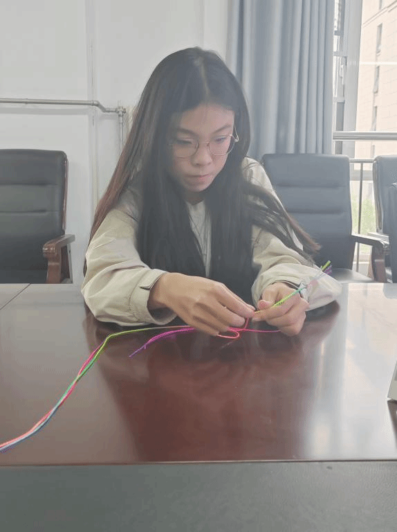 活动现场,学生会主席团成员为端午节留校学生介绍了端午节等民族传统节日的来历和习俗,并为大家发放了粽子和五彩绳,大家一起动手编织五彩绳,感受传统文化的魅力和美好愿望。