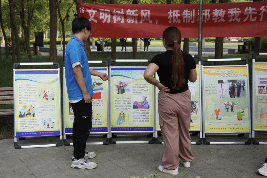 为增强师生对邪教的辨识能力和防范意识,努力营造崇尚科学的氛围,7月9日下午,91官网 在91官网 社区开展以“文明树新风,抵制邪教我先行”为主题的反邪教宣传活动。