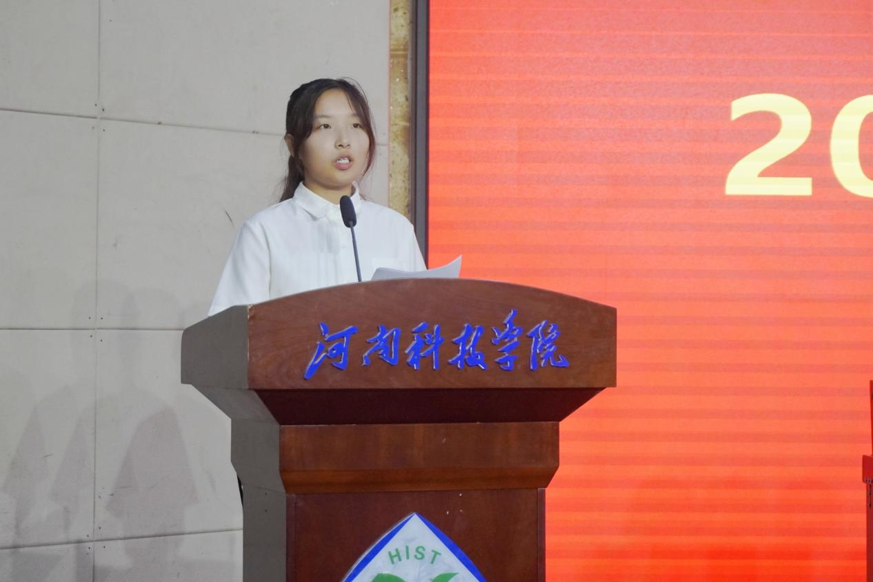 物联网工程专业223班老生代表谢亚宁以自己的亲身经历和学习感悟,向新生们分享了如何在大学期间平衡学业、兴趣与实践的心得,并鼓励新生们要勇于追梦,努力走好每一步。
