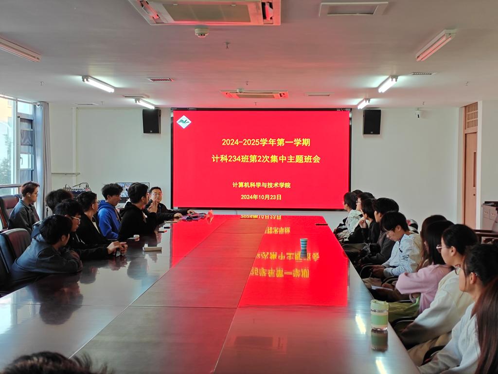 10月24日,计科234班在弘德楼A213会议室召开本学期第二次主题班会。由班主任王建平教授为同学们带来一场深刻的大学生爱党、爱国、爱校情怀教育。