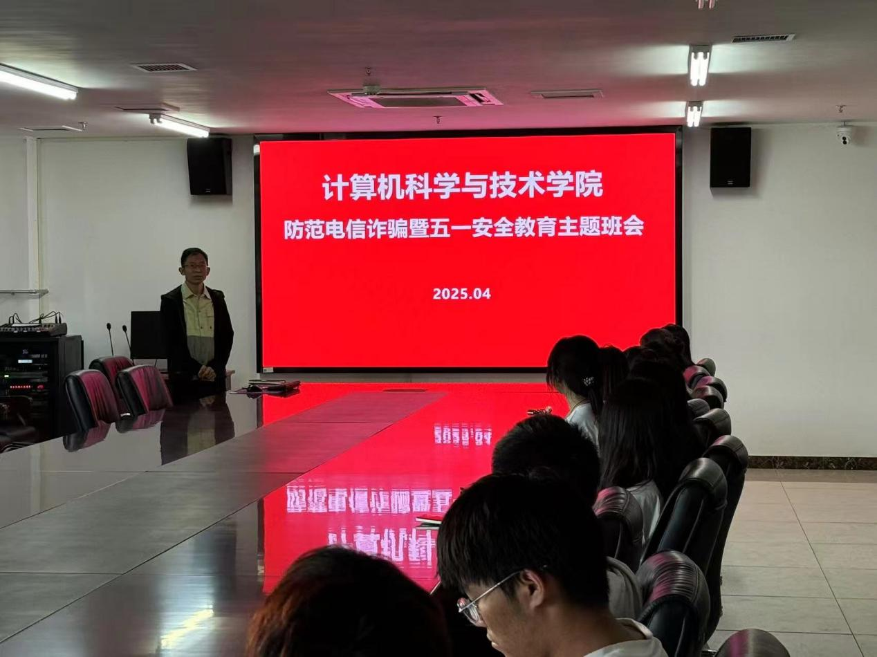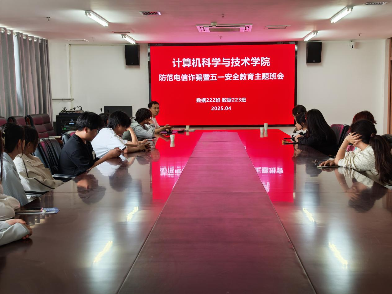 为加强反电信网络诈骗宣传教育和五一假期安全教育,提高学生防范意识和能力,2025年4月25日开始,各班级班主任组织召开主题班会,并深入宿舍进行安全隐患排查。