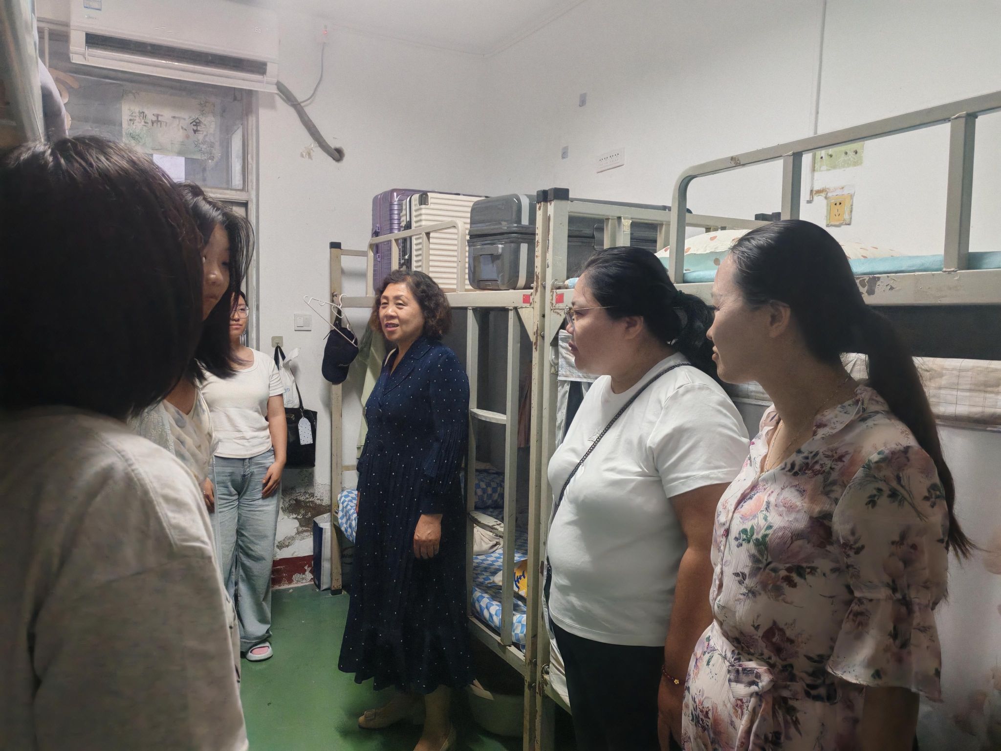 走访过程中,老师们深入每一间新生宿舍,细致查看宿舍的设施与环境,关切地询问同学们在衣、食、住、行等各方面的具体情况,并鼓励同学们要珍惜大学时光,尽快完成角色转变,宿舍成员要互相帮助,共同营造积极向上、团结友爱的宿舍文化氛围。针对新生们提出的关于课程安排、社团活动、空调租赁等方面的疑问,老师们都一一进行了耐心细致的解答,并给予了相应的建议。