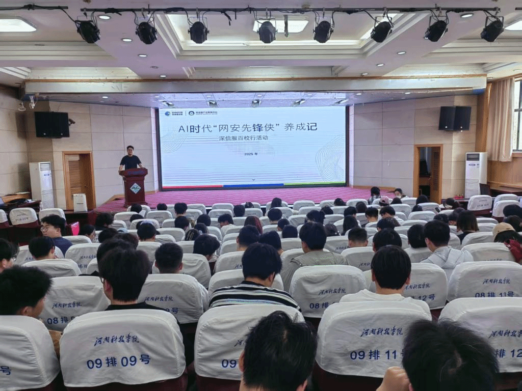 联合深信服产业教育中心在图教201举行主题为“AI时代网安先锋侠养成记”就业专场宣讲会,深信服产业教育中心人事经理史彦武主讲。2022级辅导员张敬敬和130余名学生参加了此次活动。