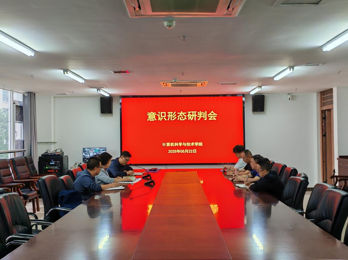 5月22日下午,计算机科学与技术学院在弘德楼A213会议室召开意识形态工作研判会,学院领导班子及辅导员参加会议,会议由学院党委书记周启主持。